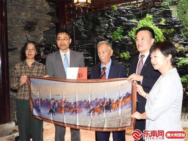何沈慧霞、田飞在于杰见证下,向杨元惺颁发“中澳文化特殊贡献奖”荣誉证书。随后,杨元惺在于杰、王书羽见证下向悉尼中国文化中心赠送个人画册及作品,刘东接受捐赠。