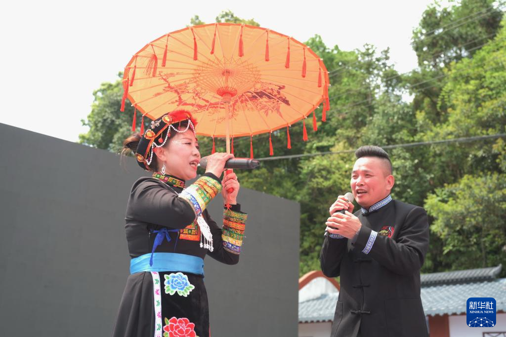 4月11日在活动现场拍摄的畲歌对唱表演。(新华社记者 林善传 摄)