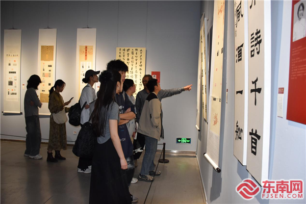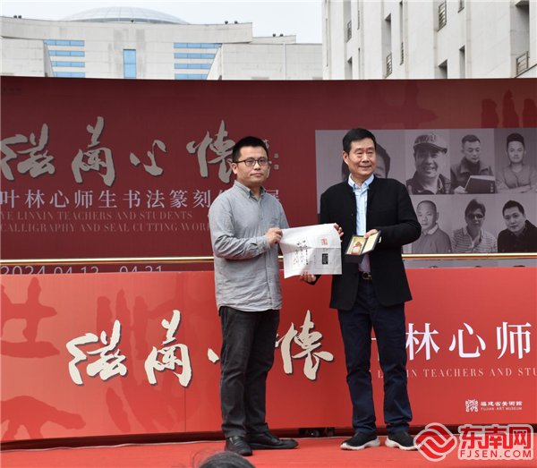 东南网4月12日讯(记者 王文青)书法篆刻艺术是中华民族传统文化的瑰宝,承载着悠久的历史和丰富的文化内涵,历经数千年的沉淀与磨砺,在一代代艺术家中得以传承。4月12日,由西泠印社指导、福建省文学艺术界联合会主办的“滋兰心怀——叶林心师生书法篆刻作品展”在福建省美术馆开幕,现场人头攒动,观展群众络绎不绝。