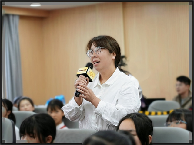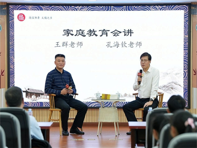 在提问环节,有家长问到如何教育孩子喜欢优秀传统文化的问题,王群谈到可以从激发孩子的学习兴趣出发,持之以恒,广泛阅读古圣先贤的经典,包括王侯将相,唐诗宋词,古文观止等文言文,积累知识,全方位提升人格修养。