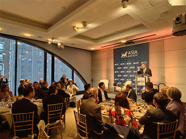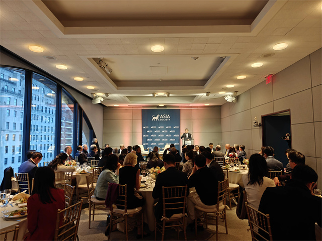 4月11日晚,由亚布力中国企业家论坛主办的第十五届中美商业领袖圆桌会议晚宴在纽约亚洲协会成功举行。中国驻纽约总领事黄屏出席并致辞。亚布力论坛理事长、泰康保险集团董事长陈东升,亚布力论坛创始人、迈胜医疗集团董事长田源,亚布力论坛理事、安达集团董事长埃文·格林伯格,亚洲协会主席康京和、美中关系全国委员会会长欧伦斯、铁狮门公司总裁罗布·施派尔、泛大西洋投资集团董事长威廉·福特等中美各界人士共70余人参加。
