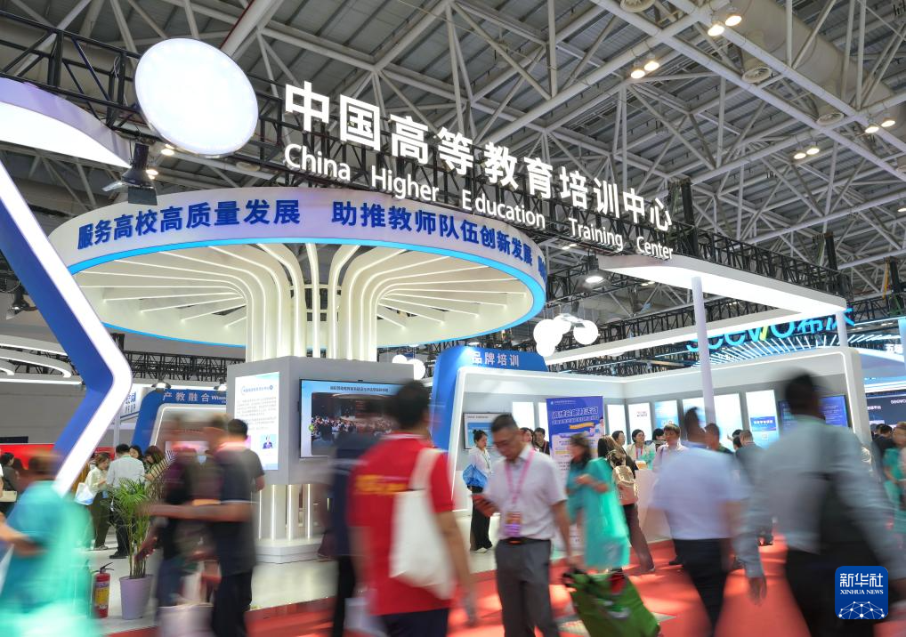 4月15日拍摄的第61届中国高等教育博览会一角。(新华社记者 林善传 摄)