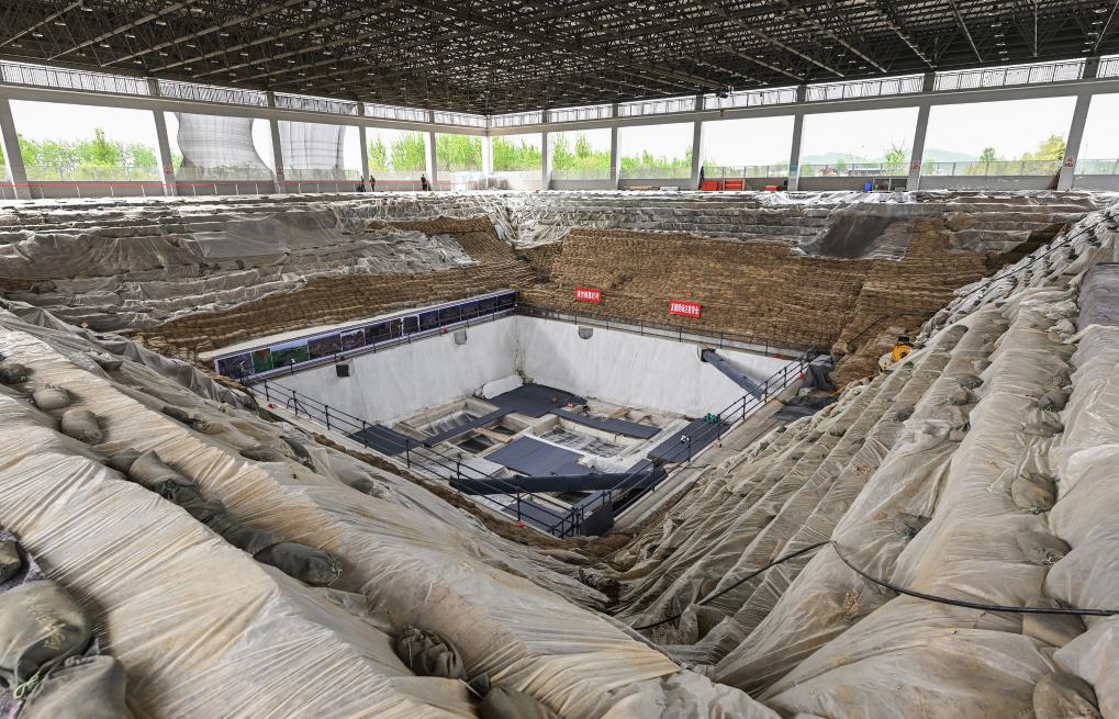4月16日拍摄的武王墩一号大墓发掘现场。新华社记者 李贺 摄