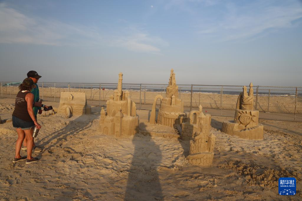 4月20日,人们在美国得克萨斯州阿兰瑟斯港欣赏沙雕。