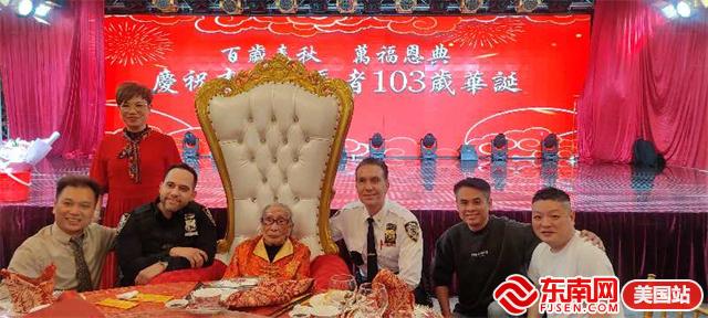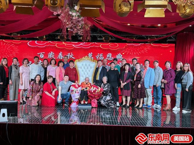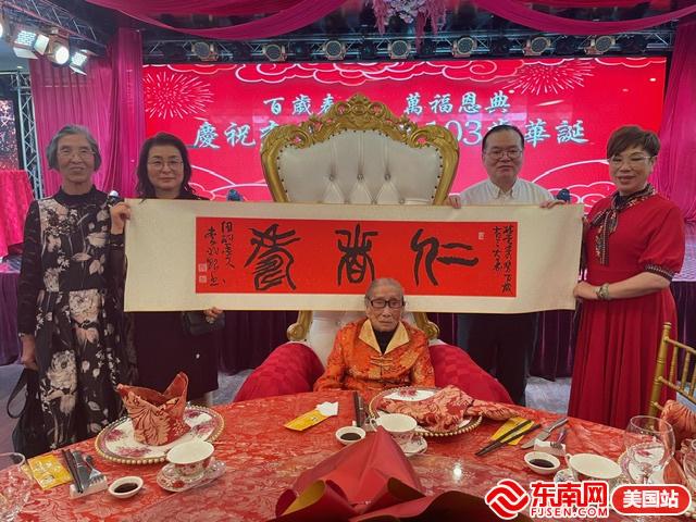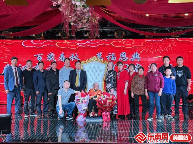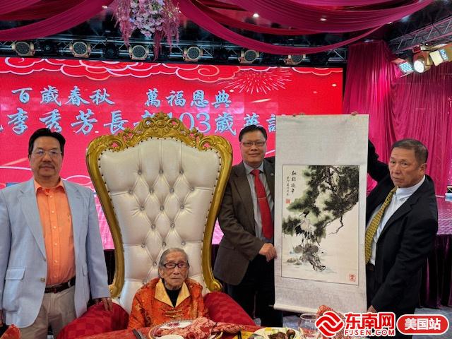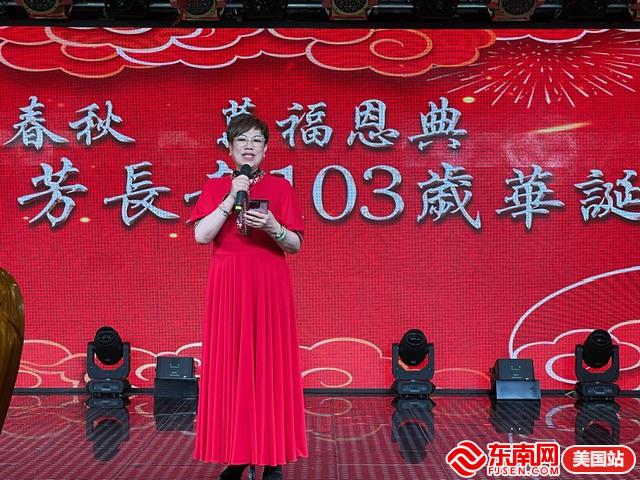 东南网4月25日讯(特约记者 纽约墨人)当地时间4月24日,福州市连江县琯头镇阳岐村乡亲林李秀芳103岁华诞宴会在纽约举行。活动由主持人项静文主持。