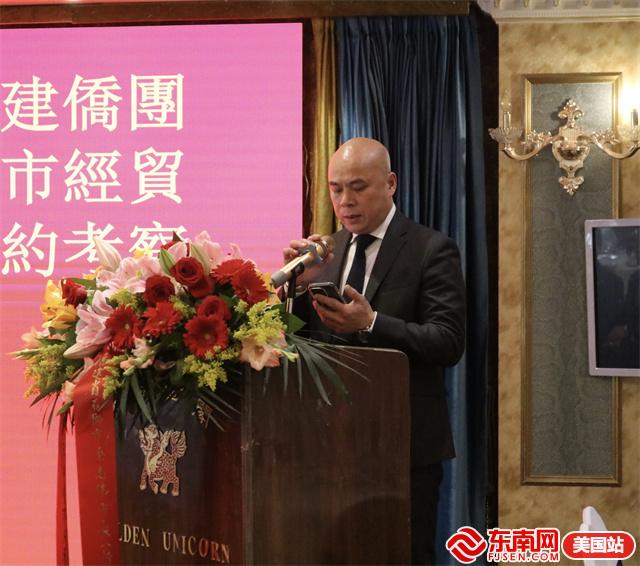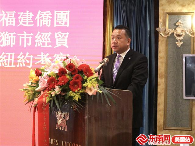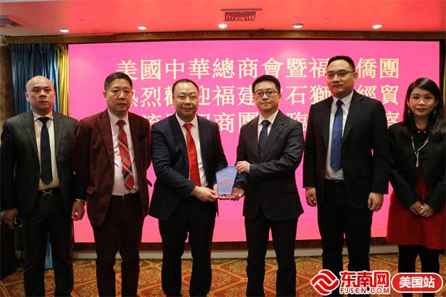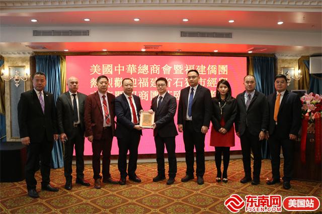 东南网4月26日讯(特约记者 白水)当地时间4月25日,美国中华总商会及多个闽籍侨团,为石狮市经贸招商考察团一行访问纽约举办欢迎活动。活动由美国中华总商会秘书长项静文主持。