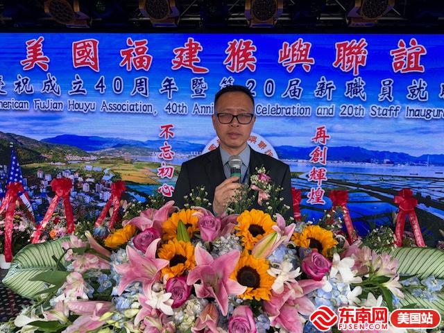东南网4月30日讯(特约记者 纽约墨人)4月28日,美国福建猴屿联谊会成立40周年暨第二十届新职员就职典礼在纽约君豪大酒楼举行。参加当晚庆典的有中国驻纽约总领馆领侨处副主任殷民俊、领事邢玉临,国会议员孟昭文、纽约州参议员刘醇逸代表、纽约州众议员郑永佳代表、纽约市议员黄敏仪、马泰,民选法官李昌永、新泽西市长 、国会议员 、市议员,美国福建猴屿联谊会主席张子南、名誉主席张明金、张君琳,张天谈、张金登、张君佐、张子濶、张辉,荣誉主席张见銮、张子云、张金荣、张天安、张君周、张君宋,第一常务副主席张君基、常务副主席张钦宝、张君理、张明腾、张奇、张云、张天闪、陈起、张君敢、张君榕、张君梅,副主席张天华、张金财、张明健、张增城、张斌、张天大、李永强、张向裕、张德秀、张天端、张君宇、张君凯、张见魁、张见浩、张德兴 、张钦龙等嘉宾乡亲1380多位。