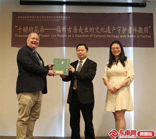 东南网5月3日讯(特约记者 白水)当地时间5月2日,由福建省文化和旅游厅主办,福建省艺术馆、福建省非物质文化遗产保护中心承办的“千瓣的花朵——福州古厝走出的文化遗产守护者林徽因”主题展在美国费城开幕。福建省人民政府副省长江尔雄、中国驻纽约总领事黄屏、中国驻纽约副总领事钱进、福建省文化和旅游厅副厅长吴新斌、福建省人民政府外事办副主任陈国全、福建省归国华侨联合会副主席兼秘书长刘思一、斯坦福大学哲学博士、美国瓦萨学院教授、武汉大学哲学学院讲席教授万百安 (Bryan Van Norden),美籍华裔职业油画、雕塑家、美国女神艺术博物馆馆长艾伦赵琼,宾大东亚研究中心副主任邓大卫(David Dettmann)等出席开幕式。吴新斌致开幕词。中国驻纽约总领馆、宾夕法尼亚大学、美国友好人士代表,侨团代表及福建乡亲等中美各界人士百余人参加此次活动。