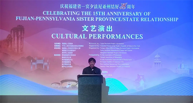 在庆祝两省州结好15周年文艺演出上,江尔雄致辞表示,福建省与宾夕法尼亚州结好15年来,双方官方往来越来越深入,经贸合作越来越密切,人文交流越来越频繁,欢迎宾州朋友到福建参观考察、投资兴业,希望继续加强双方沟通交流,推动两省州共同发展、人民相知相亲。