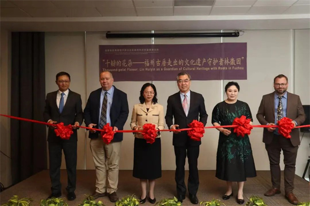 文艺演出前,江尔雄、黄屏共同会见了出席活动的美方重要嘉宾,并为福建省举办的“千瓣的花朵——福建古厝走出的文化遗产守护者林徽因”主题展开幕式剪彩。(来源:福建省外办)
