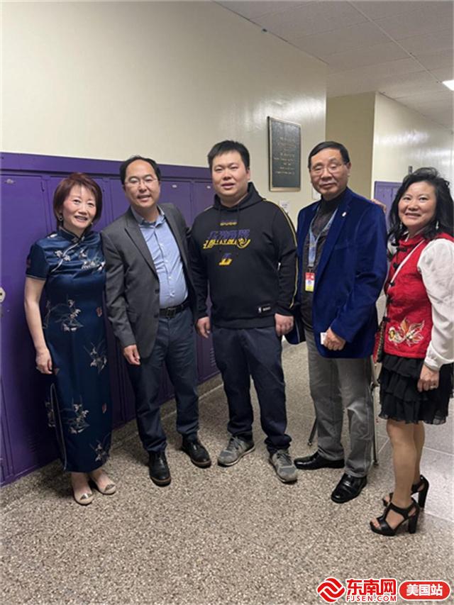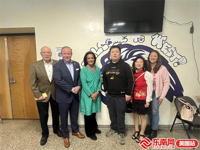 国会议员恩迪·金(左二)到现场鼓励参加本次活动的华裔组织者和商家。 刘伟 摄
