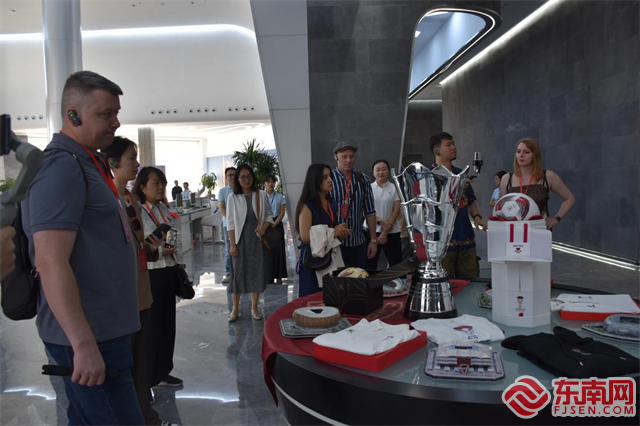 5月16日下午,中国有约·相约福建2024年国际媒体采访团一行走进晋江的卡尔美体育用品有限公司,感受公司创新发展史,体验多功能模板机制衣,被时尚新颖的卡尔美产品出口海外市场成果所吸引。