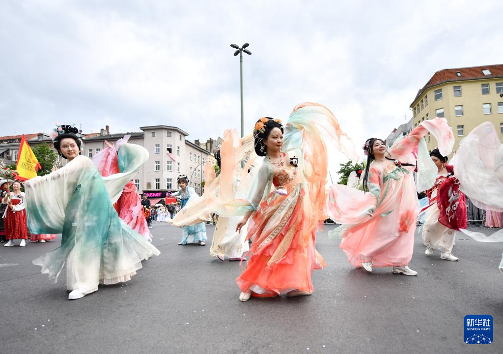 5月19日,来自中国的演员参加柏林文化狂欢节大游行。