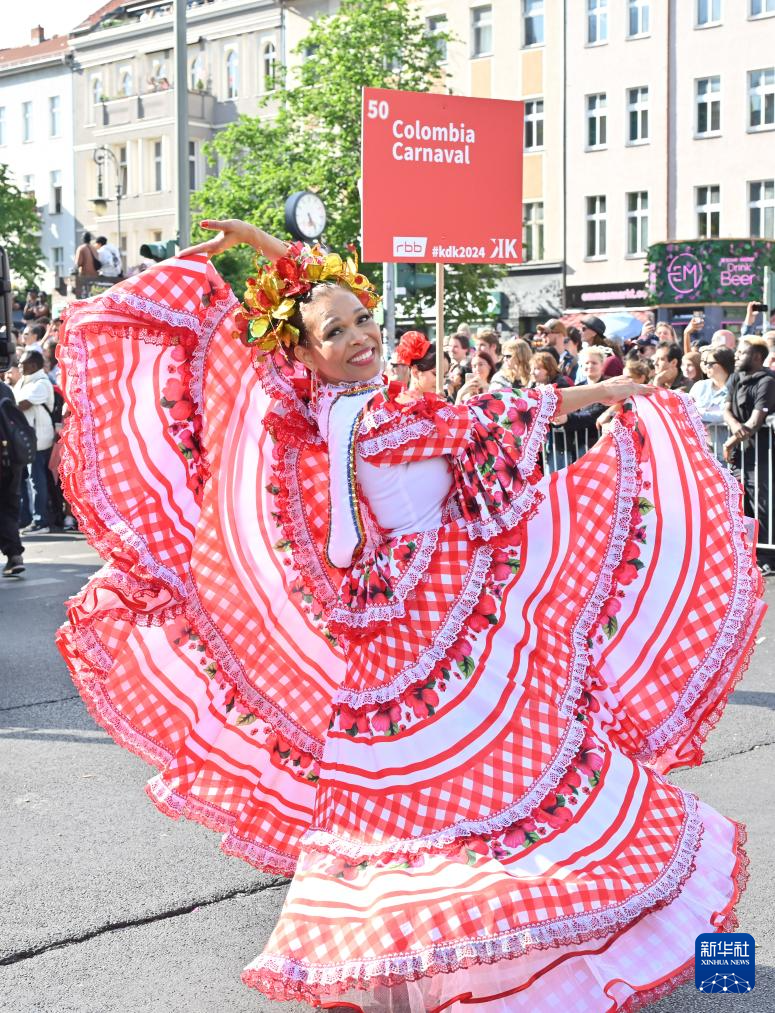 5月19日,来自哥伦比亚的演员参加柏林文化狂欢节大游行。