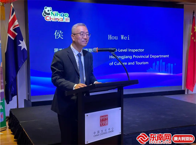 东南网5月27日讯(特约记者 一禾)当地时间5月24日,由黑龙江省文化和旅游厅、中国驻悉尼旅游办事处、悉尼中国文化中心主办,中国旅游报社承办的“你好!中国”黑龙江冰雪旅游推介会在悉尼中国文化中心成功举办。黑龙江省文化和旅游厅一级巡视员侯伟,澳大利亚默林集团副总裁兼总监西蒙·威廉姆森(Mr Simon Williamson),中国驻悉尼旅游办事处主任刘东,澳中旅总经理孙坚,澳大利亚华贸会执行主席曾毅及澳各界人士等60余人参加活动。