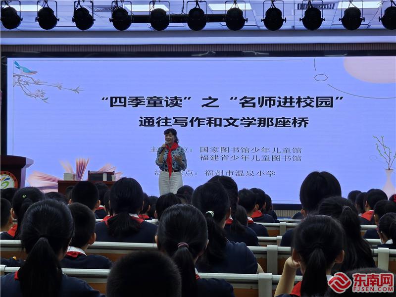 东南网5月27日讯 在“六一”儿童节到来之际,5月26日,福建省少年儿童图书馆邀请著名儿童文学作家殷健灵在福州与大家分享她的创作之路,讲述她对儿童文学的认识以及创作心得。5月27日,殷健灵还分别走进了福州市温泉小学和福州市钱塘小学,以“通向写作和文学的那座桥”为主题,与在校师生面对面交流,更好地激发孩子的阅读兴趣,点燃孩子的创作热情。
