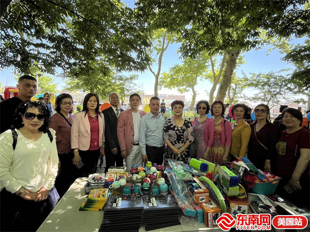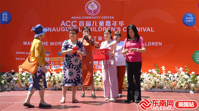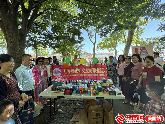 赞助商展位:美国福建妇女友好联盟总会现场免费为孩子们发放玩具