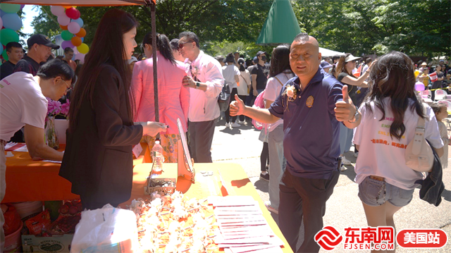 赞助商展位:美国福建四海商会现场免费为孩子们发放玩具