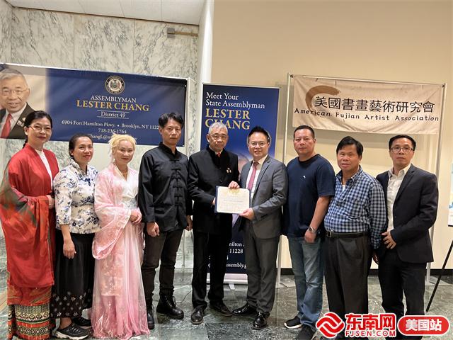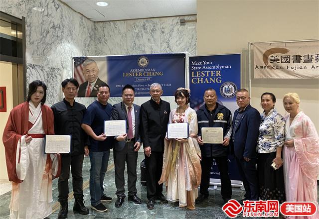 东南网6月3日讯(特约记者 白水)当地时间5月29日,为庆祝一年一度的亚裔传统文化月,纽约州众议员郑永佳携手美国书画艺术研究会、美国纽约华人协会、纽约国际文化交流中心共同主办的书画汉服展在纽约州议会大厦举行。多位艺术家现场挥毫泼墨,议会议员和工作人员也穿上汉服拍照留念。