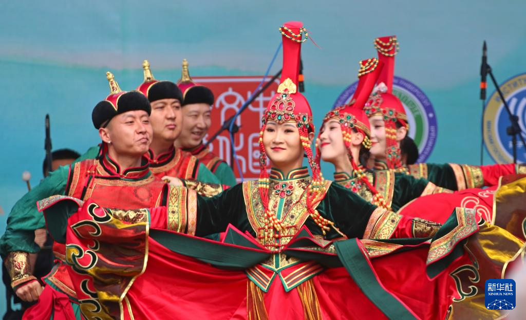 6月1日,乌兰牧骑艺术团演员在白俄罗斯明斯克“茶和天下·雅集”活动上表演舞蹈。