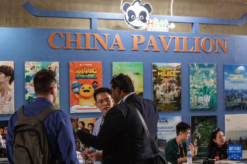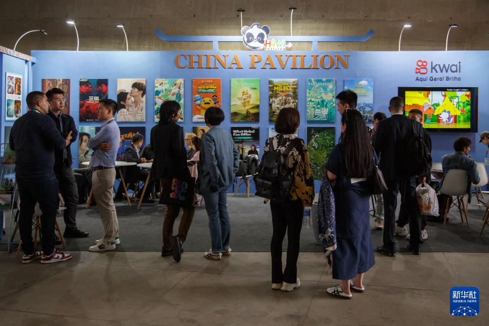 6月4日,在巴西里约热内卢,与会嘉宾在中国联合展台交流。