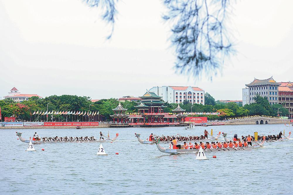 陈嘉庚在世时,集美共举办了11次龙舟赛,其中有7次由他本人主持,每次比赛都是锣鼓喧天、鞭炮齐鸣,池中龙舟飞渡,岸上人山人海,其盛况正如闽南俗语所说“五月五,龙船鼓满溪路”。