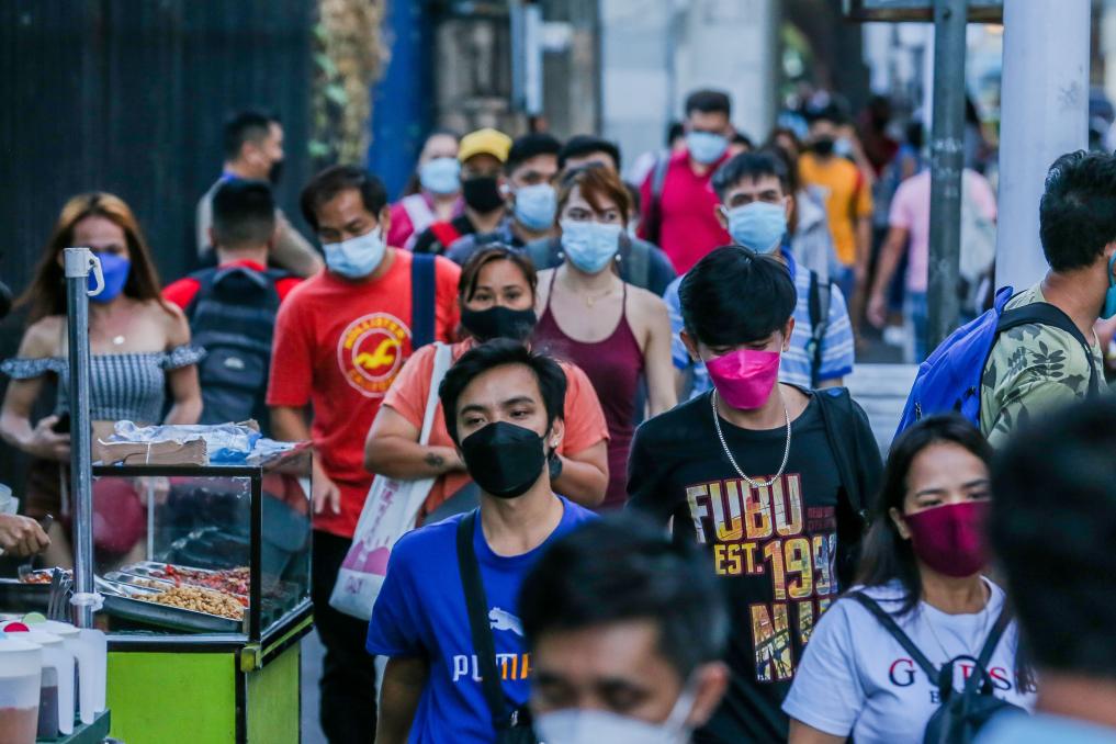 2022年1月17日,在菲律宾奎松城,人们走向公交车站。新华社发(乌马利 摄)
