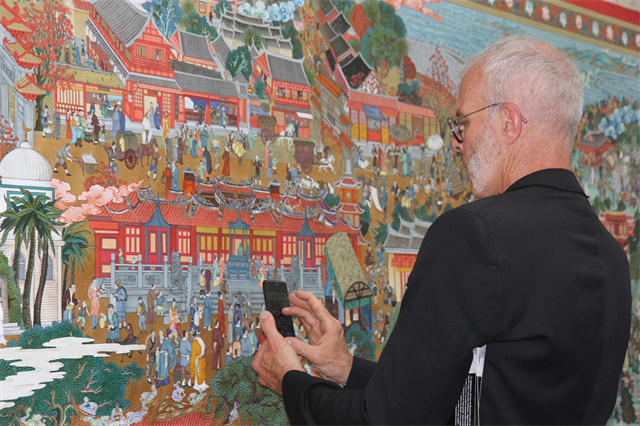 再现东方古刺桐城“市井十洲人”盛景的《世界商埠》吸引法国观众驻足欣赏。吴静华供图