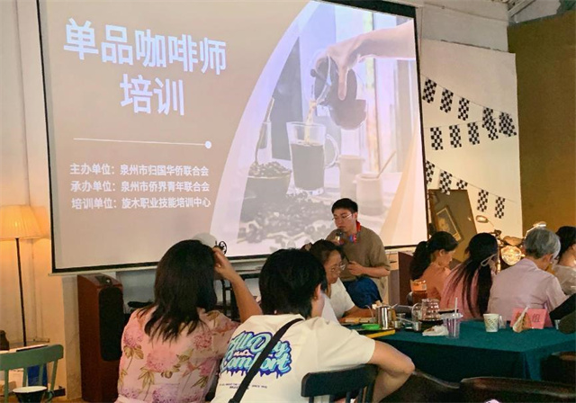 由泉州市侨联主办,泉州市侨青联承办的泉州市归侨侨眷(侨界人才)首期咖啡师职业技能培训班于6月21日开班。周辉华供图