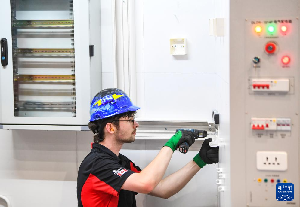 6月24日,第二届“一带一路”国际技能大赛电气装置项目选手在比赛中。新华社记者 王全超 摄