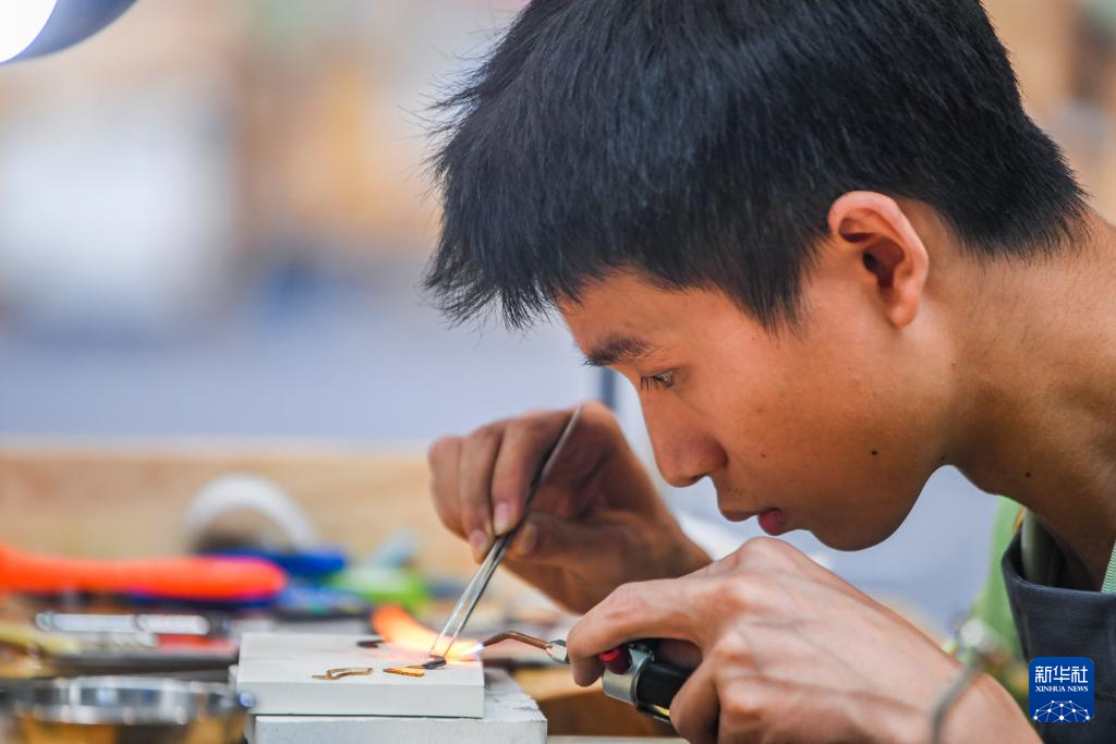 6月24日,第二届“一带一路”国际技能大赛珠宝加工项目选手在比赛中。新华社记者 王全超 摄