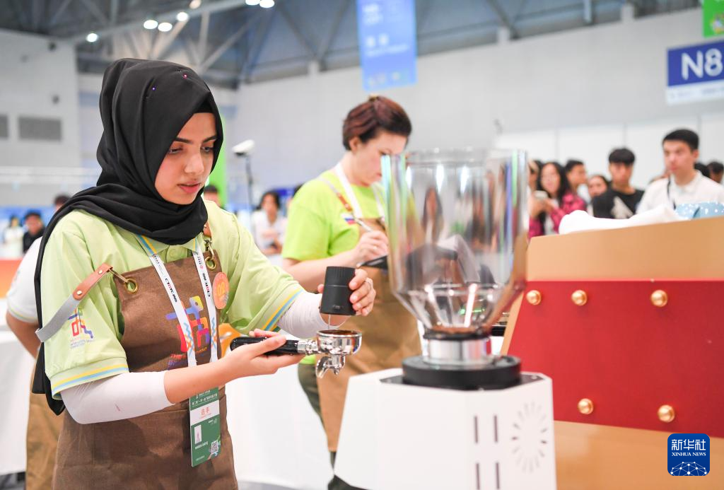 6月24日,第二届“一带一路”国际技能大赛咖啡制作项目选手在比赛中。新华社记者 王全超 摄
