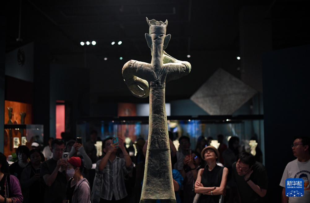 当日,“探秘古蜀文明——三星堆与金沙”展览在北京大运河博物馆(首都博物馆东馆)开幕。展览汇聚了四川广汉三星堆博物馆、成都金沙遗址博物馆等12家文博机构极具古蜀文明特点的文物265件(套),分为“发现三星堆”“解读三星堆”“定位三星堆”三个篇章。