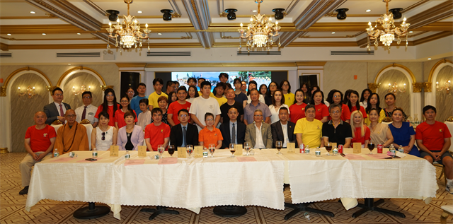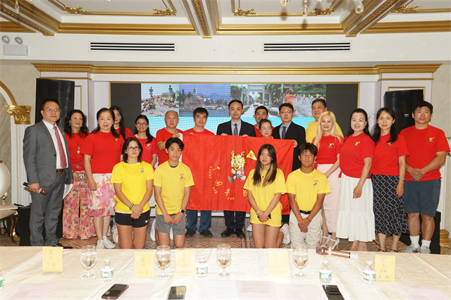 开营式现场,来自海外的领队老师、学生及家长代表与参加过夏令营的营员们一起分享交流。侨社代表也纷纷为夏令营送上祝福并为寻根协会捐款表示支持。