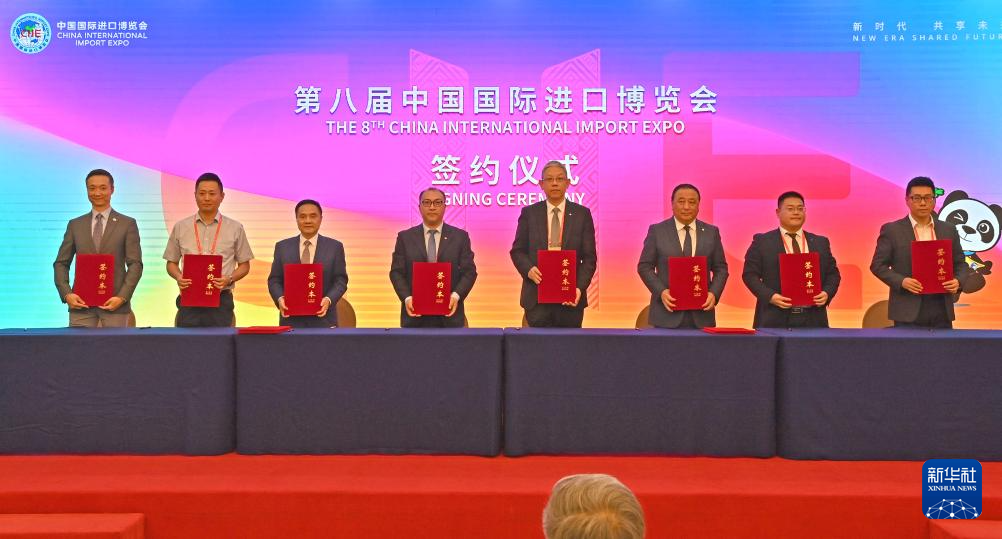 7月3日拍摄的第八届中国国际进口博览会签约仪式现场。新华社记者 周华 摄