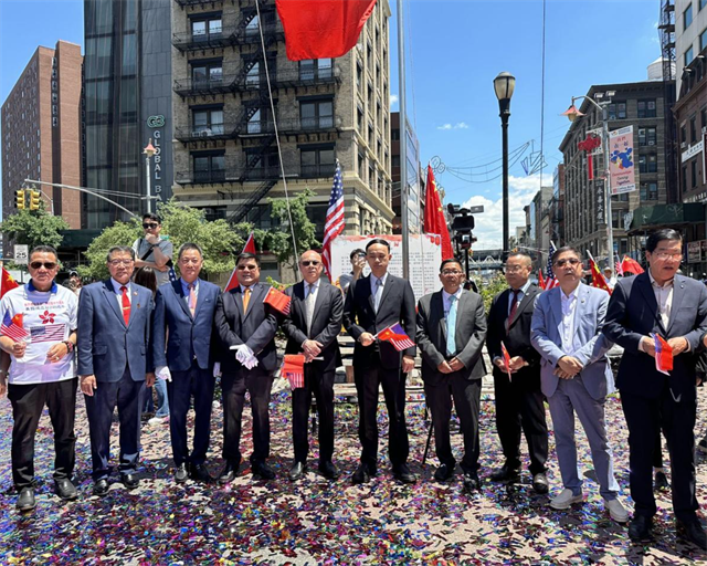 东南网7月4日讯(特约通讯员 王寅)当地时间7月2日,美国福建三山会馆、美国福建四海商会在纽约联合举行庆祝香港回归祖国二十七周年升旗仪式。中国驻纽约总领馆领侨处主任潘焱、领事赵新星,纽约市议员马泰,美国福建三山会馆候任主席郑振何,永远总顾问王纲勇,秘书长郑德欣、王寅,美国福建四海商会议长李光文,侨领、社团代表及闽籍乡亲等200余人参加活动。
