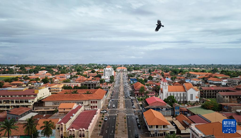 这是7月7日在几内亚比绍首都比绍拍摄的城市风光(无人机照片)。