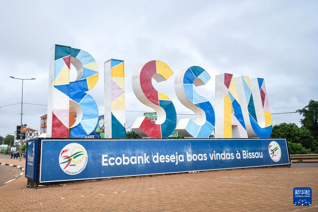 这是7月7日在几内亚比绍首都比绍拍摄的街头广告牌。