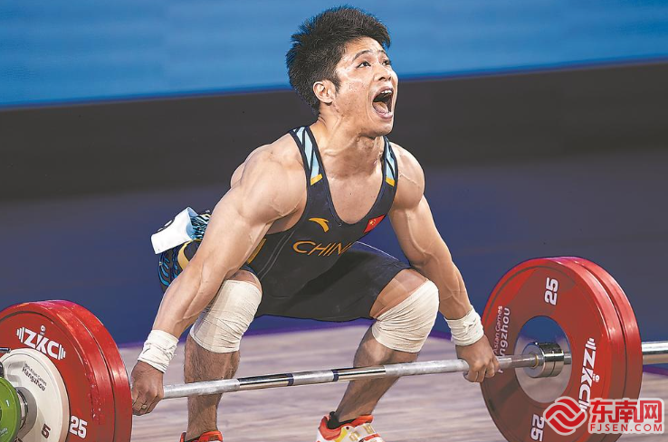 Li Fabin, who was born in 1993, will strive for his successive championship of 61kg Men's Weightlifting. (Photo by Fujian Daily reporter Lin Xi)