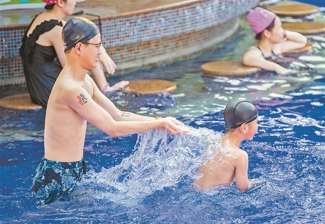 In the Riyuegu Hotsprings Resort, the parents and children are playing in water to relieve the summer heat. (Photo by reporter Lu Jianhao)
