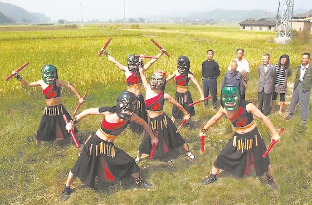 The Nuo Dance team performing in the field. (Photo by FJSEN correspondent Lin Chuanren)