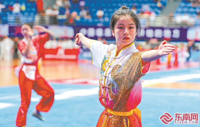 FJSEN report on July 21 (Photo by Fujian Daily reporter Chen Yinli, correspondent Xie Guiming) On July 20, the 1st Fujian Martial Arts Competition was kicked off in Fuqing Stadium. More than 1600 athletes from 92 Fujian martial arts teams participated in the Competition. The Competition is sponsored by Fujian Martial Arts Association and Fuzhou Sports Federation. Moreover, it sets boxing series, equipment series, pair training series and group series. Among them, young athletes participated in the National Intangible Cultural Heritage Projects such as Dishu Quan and Yongchun Quan, and the Provincial Intangible Cultural Heritage Projects, such as Xiangdian Quan and Yongtai Huzun Quan had attracted attention. In the photo above, the young athlete is competing in the traditional martial arts program.