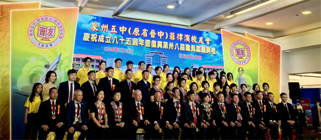 东南网7月30日讯(特约记者 洪宾宾)当地时间7月28日,泉州五中菲律宾校友会(以下简称“校友会”)成立八十五周年庆典暨新职员就职典礼在马尼拉举行。泉州五中党委书记韦秋哲担任典礼监誓员,菲律宾菲华泉州公会、菲律宾泉州总商会会长陈凯旋担任典礼主讲人。旅菲各校友会联合会主席王清涵,旅菲各校友会联合会名誉主席、校友联2024年访问团团长柯志超,泉州五中香港校友会副会长陈丽琳,泉州五中厦门校友会副会长游涛等先后致辞,菲华友好社团代表出席典礼活动。