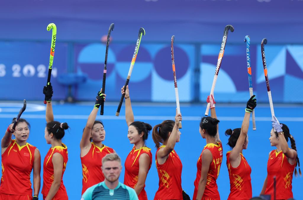 8月7日,中国队球员在巴黎奥运会女子曲棍球半决赛前。新华社记者 任鹏飞 摄
