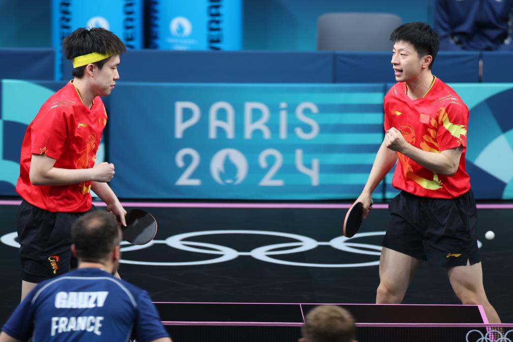 8月8日,中国组合马龙(右)/王楚钦在比赛中。新华社记者 刘续 摄