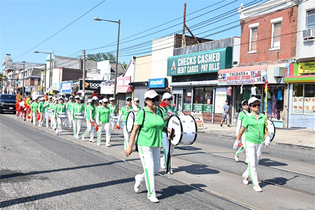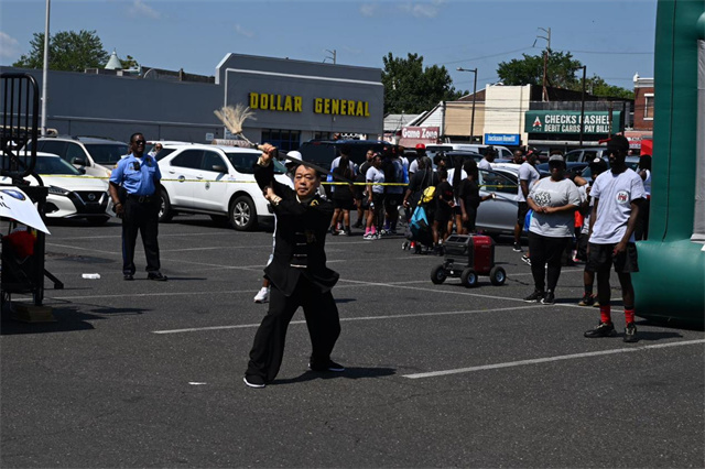 当天上午,游行活动在Woodland大道举行,富贵军乐团在团长卢丽容的指挥下激昂地敲打着军鼓,阵阵鼓声引来了当地社区居民的关注。随后的表演活动中,富贵军乐团身着民族服饰演绎了彩带舞、扇子舞和民族舞;费城东西方文化学院院长张西川带来精彩的中国武术表演,也赢得了在场观众的热烈掌声。