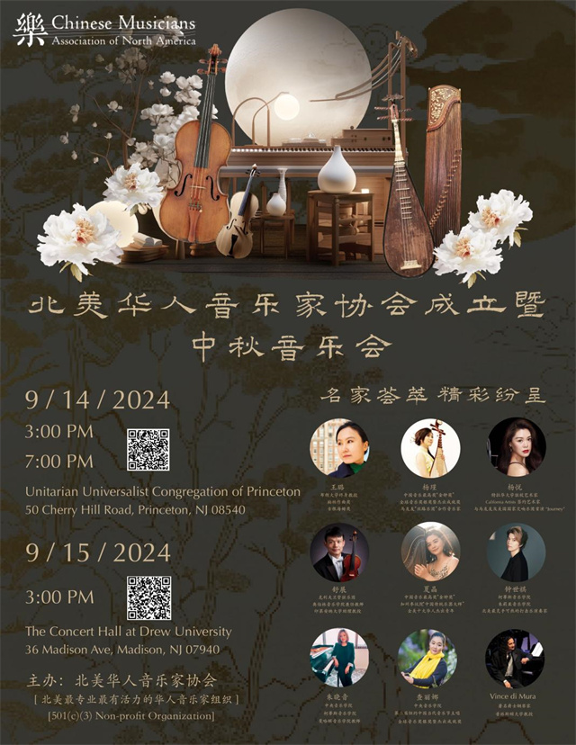 东南网8月21日讯(特约记者 刘伟)当地时间9月14日至15日,北美华人音乐家协会将在普林斯顿大学和德鲁大学分别举行三场音乐会,庆祝协会的成立及中秋佳节的到来。