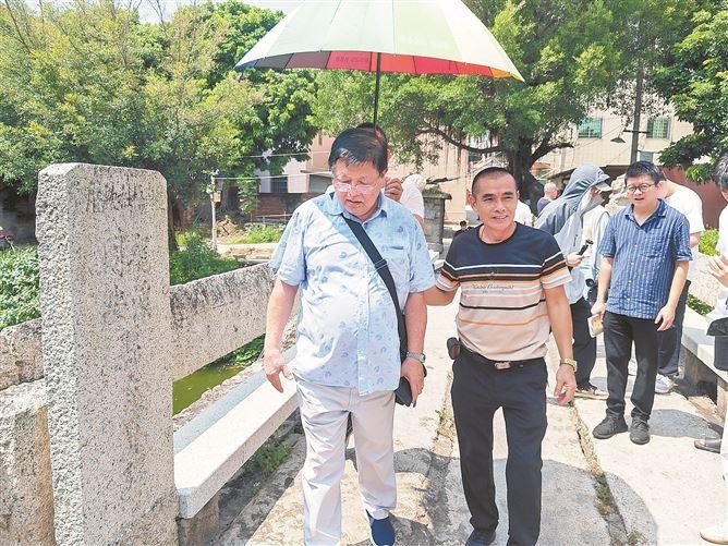 印尼华裔欧阳先生(左一)到桥头村参观。
