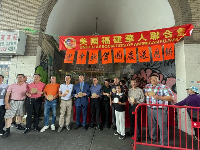 东南网9月3日讯(特约记者 纽约墨人)当地时间8月29日,美国福建华人联合会“迎中秋 贺国庆”赠月饼活动在纽约举行。中国驻纽约总领馆领事李德、邢玉临,美国福建华人联合会主席李华及在美闽籍社团侨领代表等各界嘉宾参加。活动现场特别派送了500份中秋月饼。