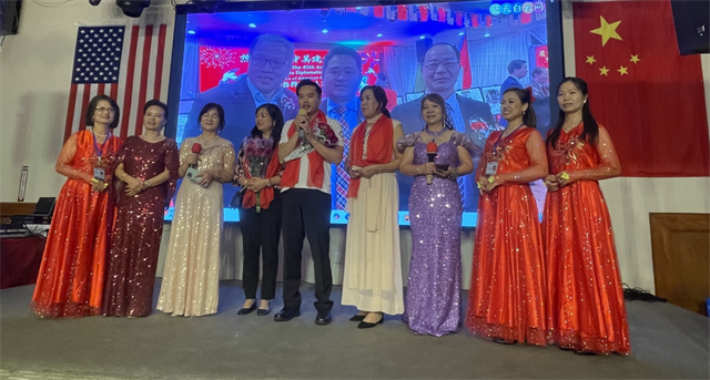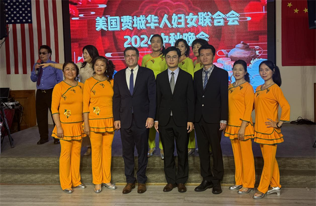东南网9月13日讯(特约记者 贵茂)当地时间9月10日,美国费城华人妇女联合会(以下简称“联合会”)在费城举办“迎中秋贺国庆”联欢晚会。中国驻纽约总领馆领事向裕韬、王程出席,联合会常务副会长李振凤、卢秀玲,总顾问张茂生主持晚会。